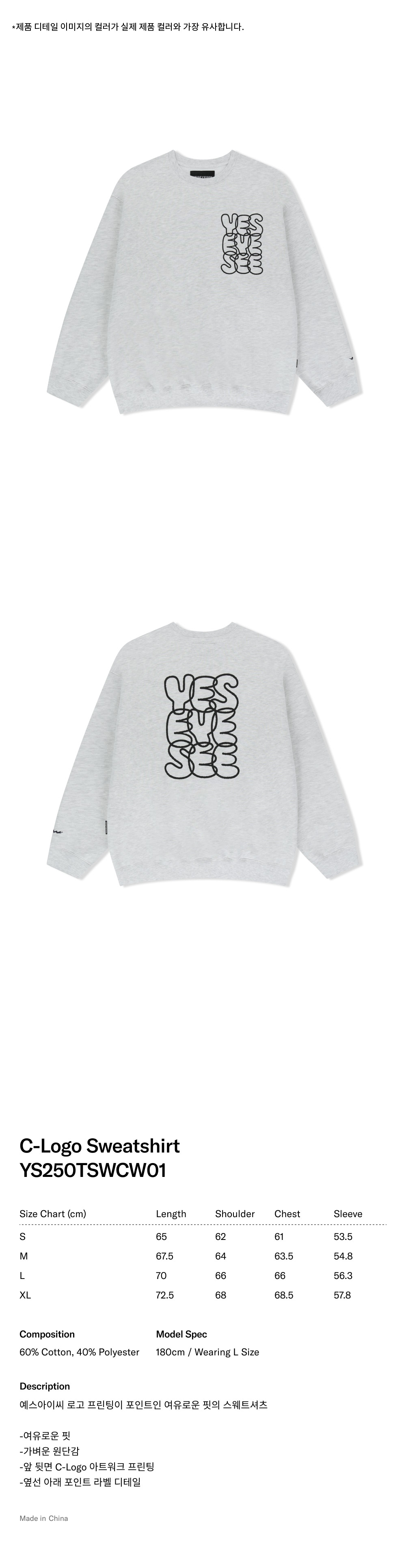 예스아이씨 씨로고 스웨트셔츠 라이트 그레이