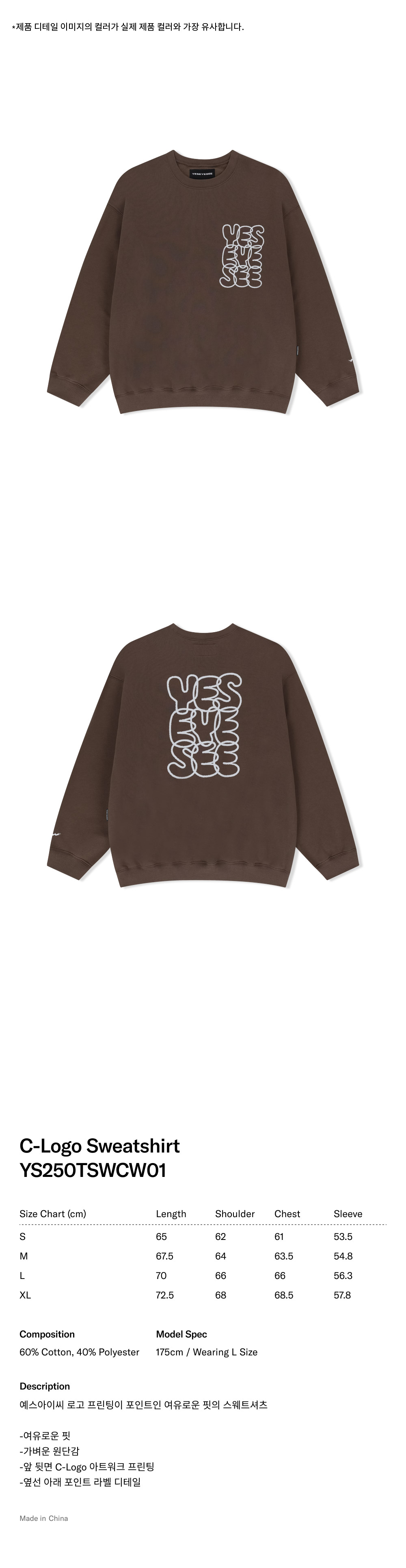 예스아이씨 씨로고 스웨트셔츠 브라운