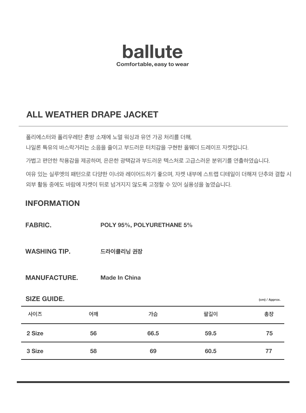 발루트 올 웨더 드레이프 셋업 네이비