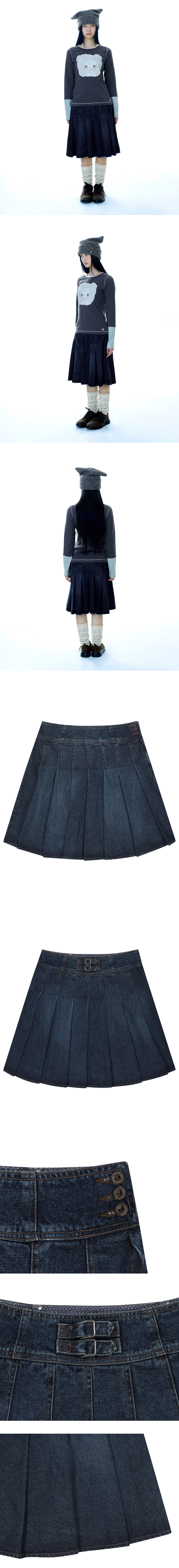 코이세이오 딥 데님 플리츠 스커트 네이비