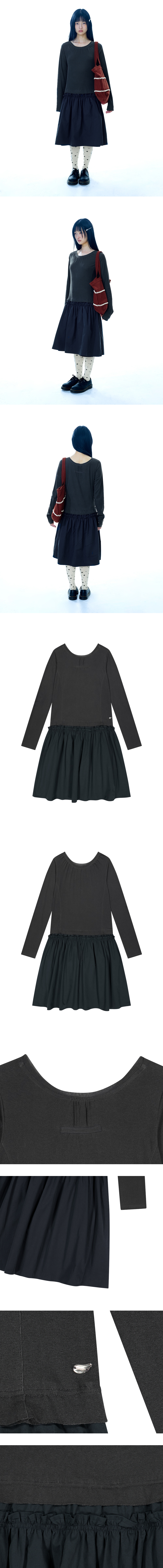 코이세이오 투웨이 셔링 원피스 블루 차콜