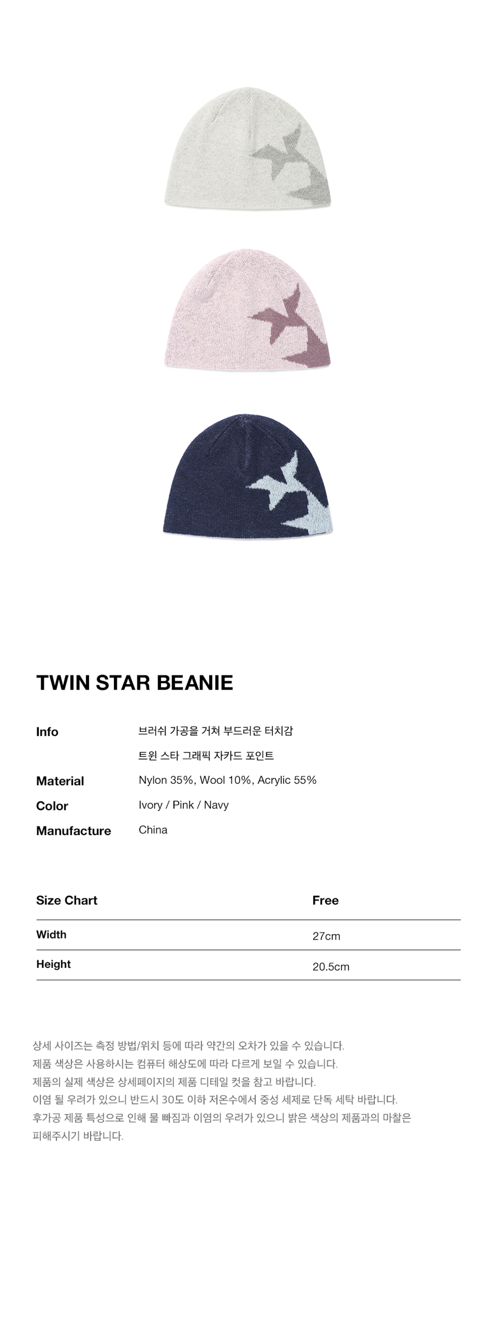 카비시 트윈 스타 비니 네이비