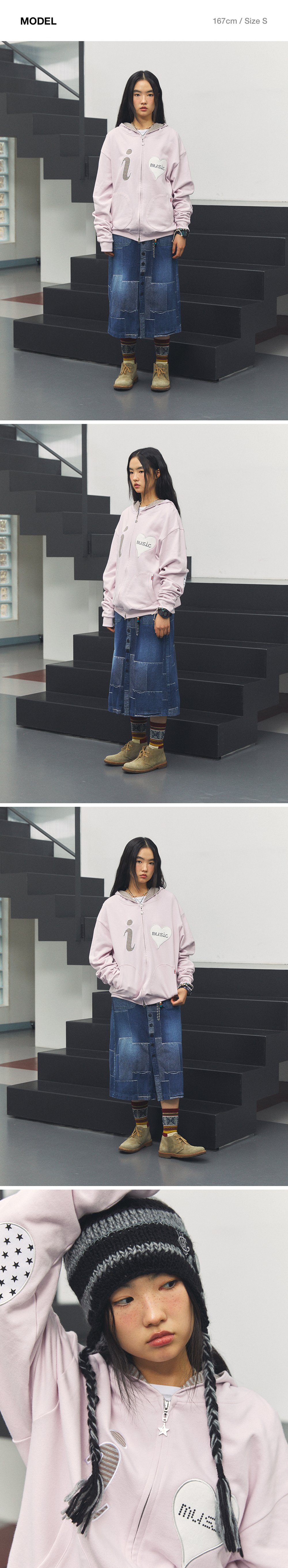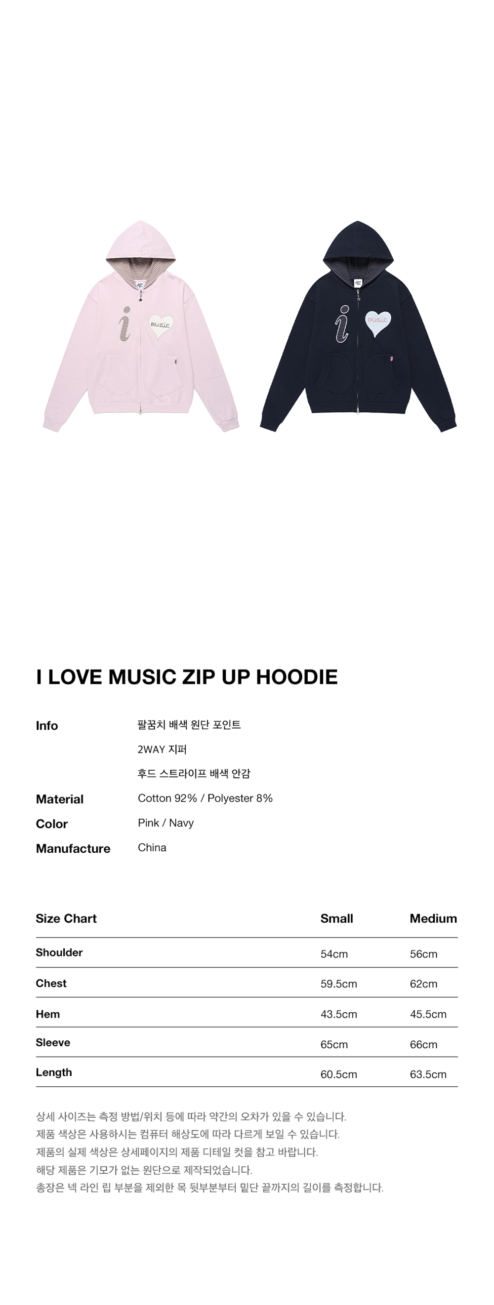 카비시 아이 러브 뮤직 집업 후디 핑크