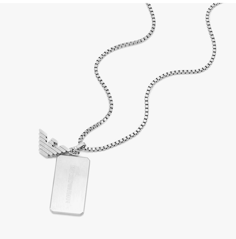 엠포리오 아르마니 스테인리스 스틸 도그 태그 네클리스 실버