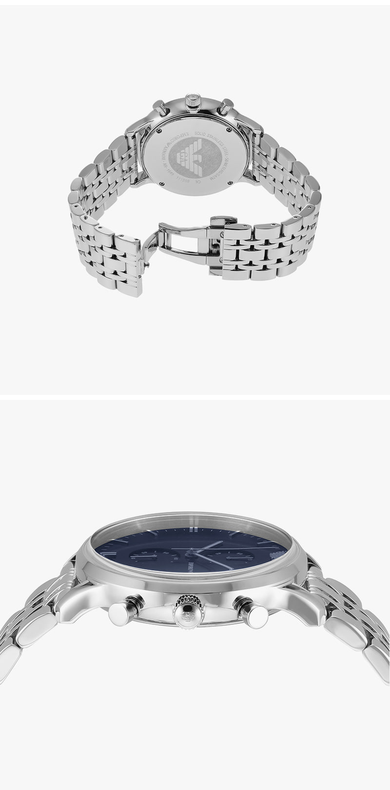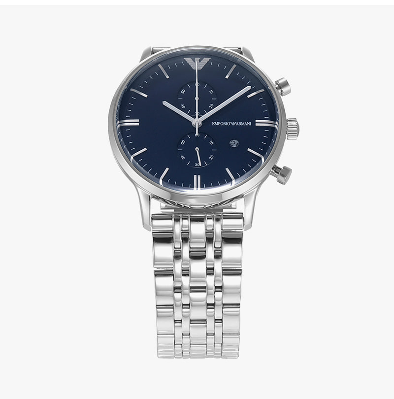 엠포리오 아르마니 투핸드 43mm 스테인리스 스틸 블루 실버