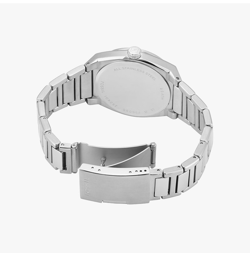Fossil Everett Three-Hand Date Stainless Steel Watch Silver Green