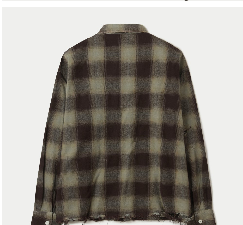 시리즈 넬 데미지 체크 셔츠 브라운