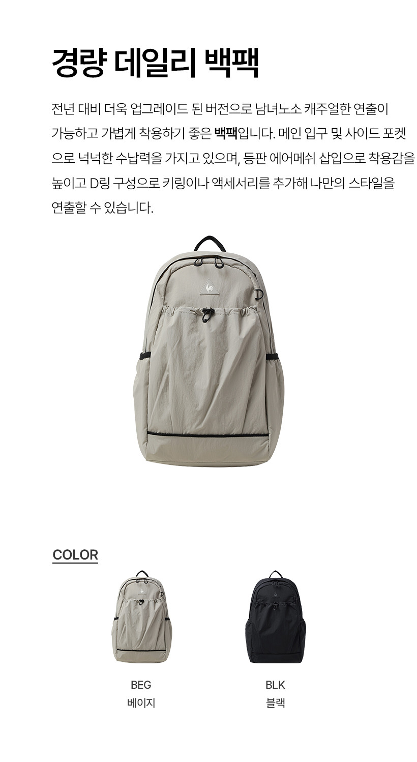 르꼬끄 스포르티브 경량 데일리 백팩 - 베이지(QQ323ABP81)