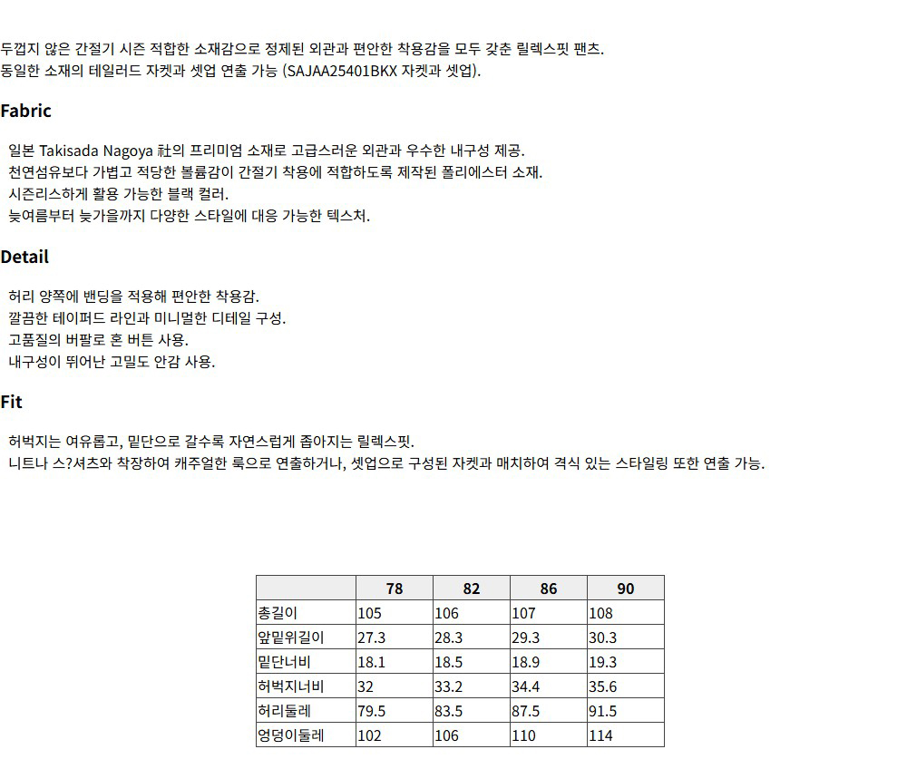 시리즈 셋업 재패니즈 패브릭 릴렉스 팬츠 블랙