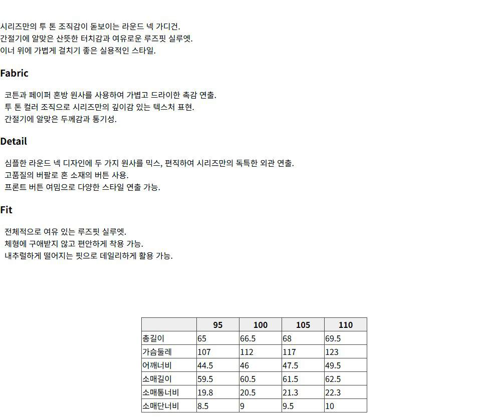시리즈 간절기 이중우수 라운드 가디건 라이트 그레이