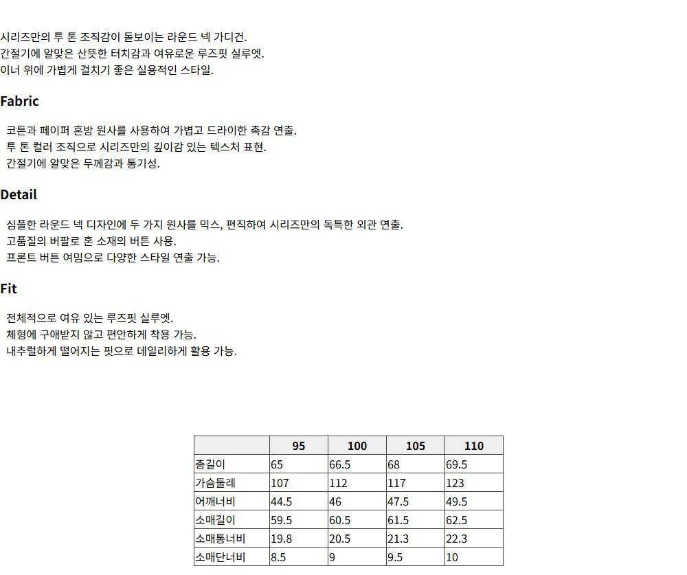 시리즈 간절기 이중우수 라운드 가디건 차콜