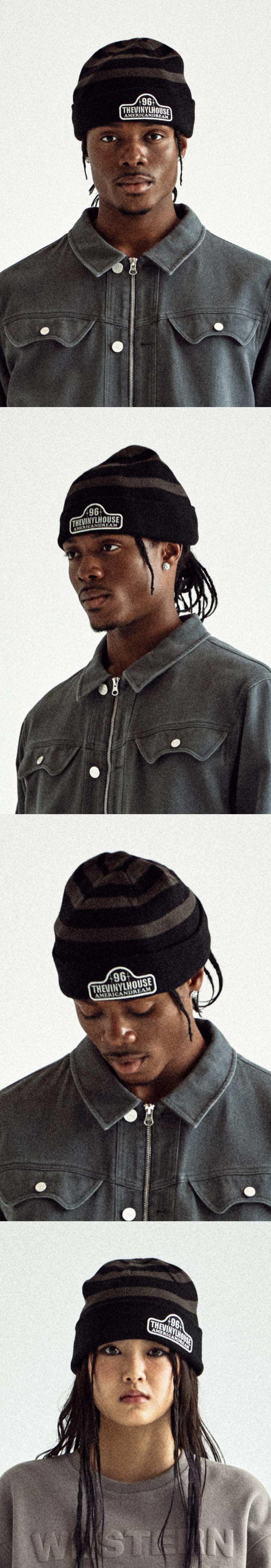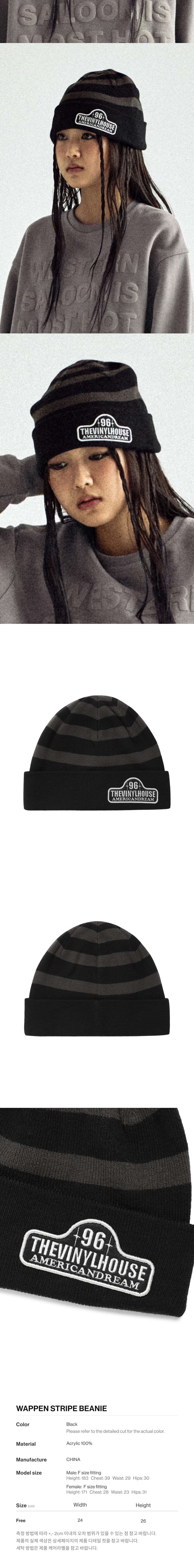 더바이닐하우스 와펜 스트라이프 비니 블랙