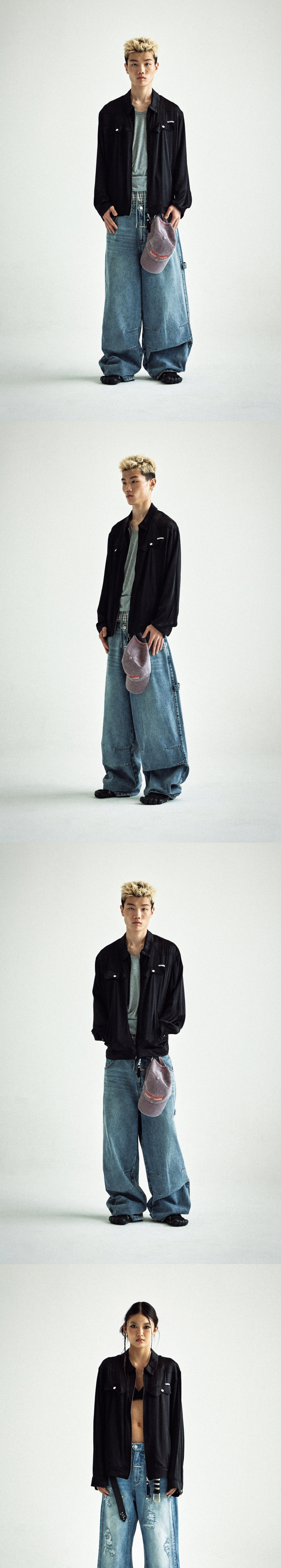 더바이닐하우스 새틴 카라 싱글 자켓 블랙