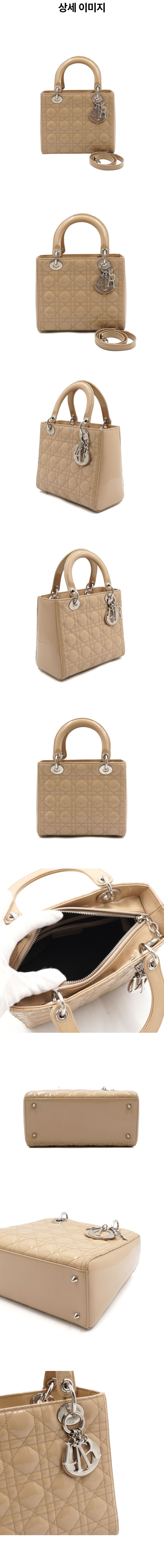 디올 베이지 페이던트 유광 레이디 디올 미디엄 까나쥬 토트백 겸 숄더백 aa52945