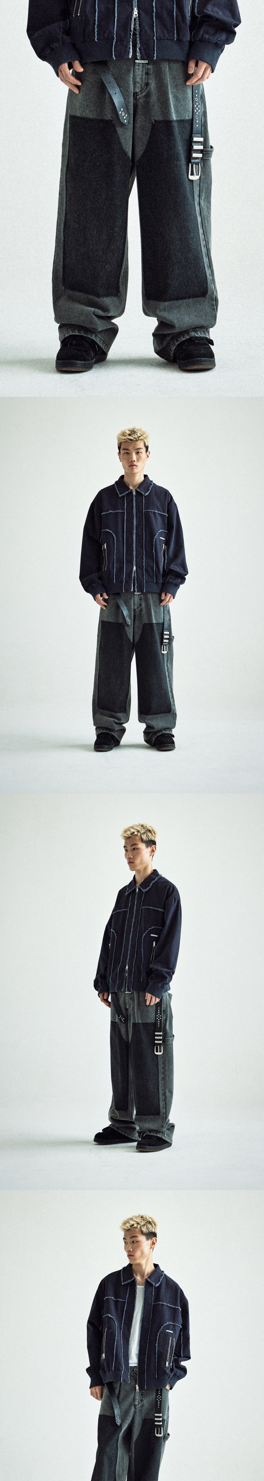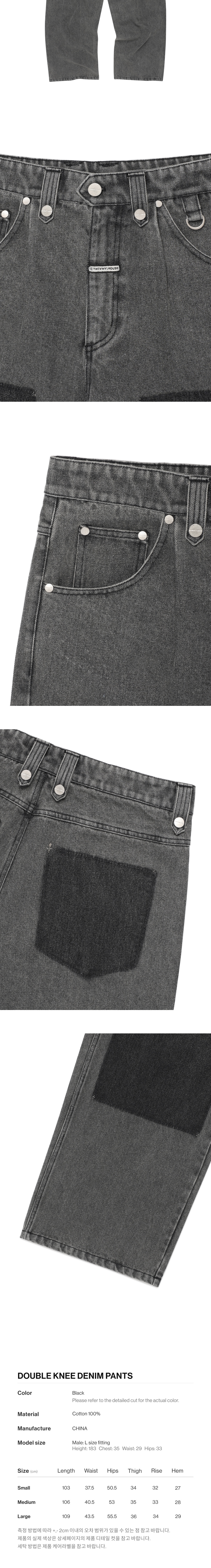 더바이닐하우스 더블 니 데님팬츠 블랙
