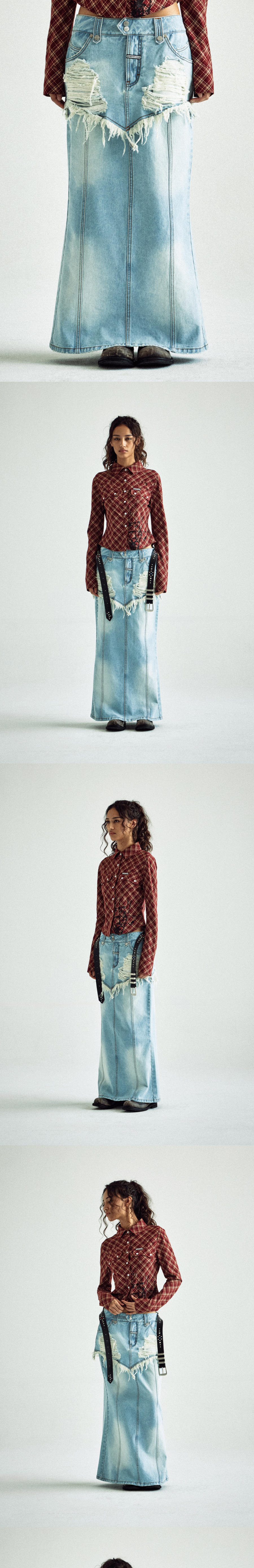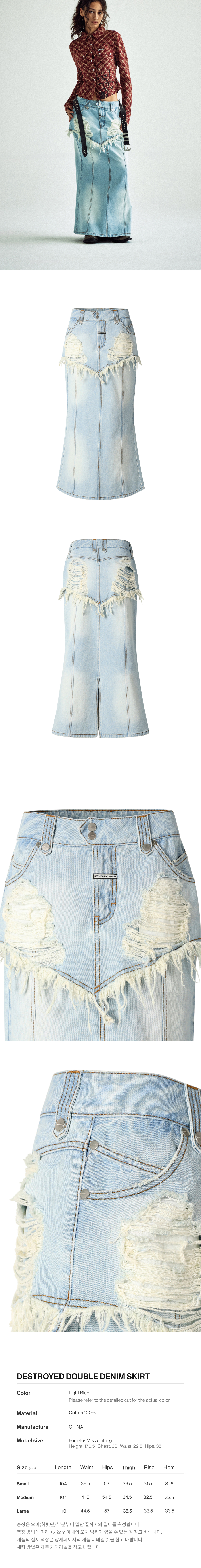 더바이닐하우스 디스트로이드 더블 데님 스커트 라이트블루