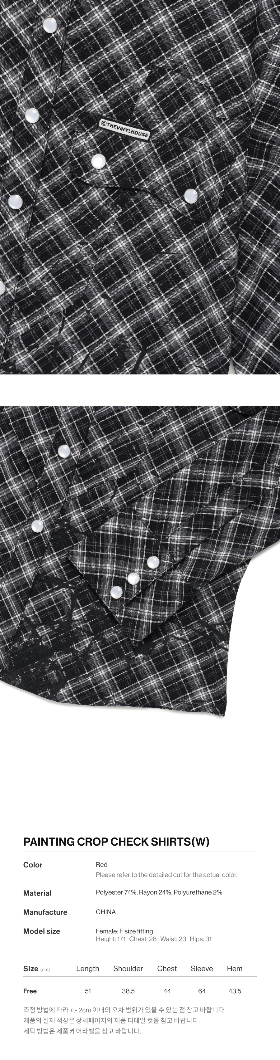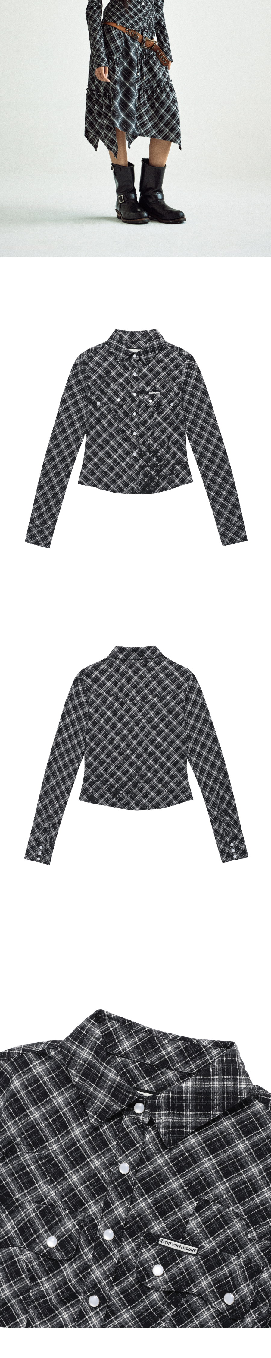 더바이닐하우스 페인팅 크롭 체크 셔츠 블랙