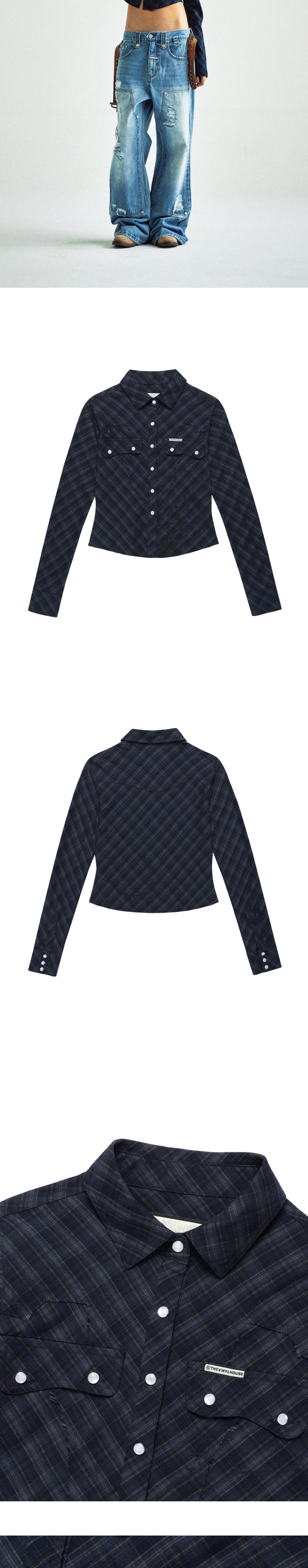 (W) Thevinylhouse Painting Crop Check Shirts Navy