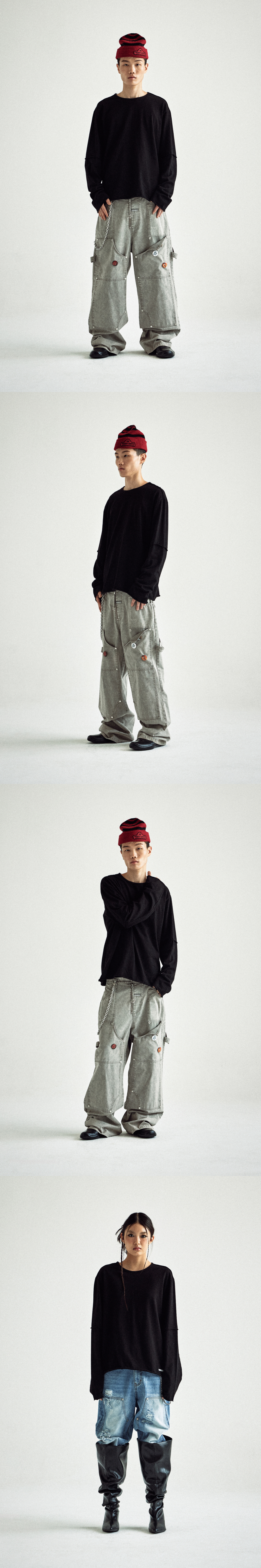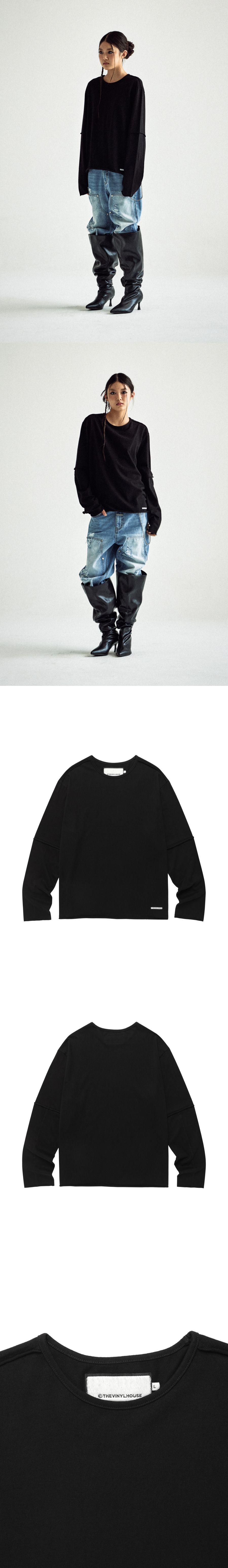 더바이닐하우스 컷 오프 레이어드 롱슬리브 티셔츠 블랙