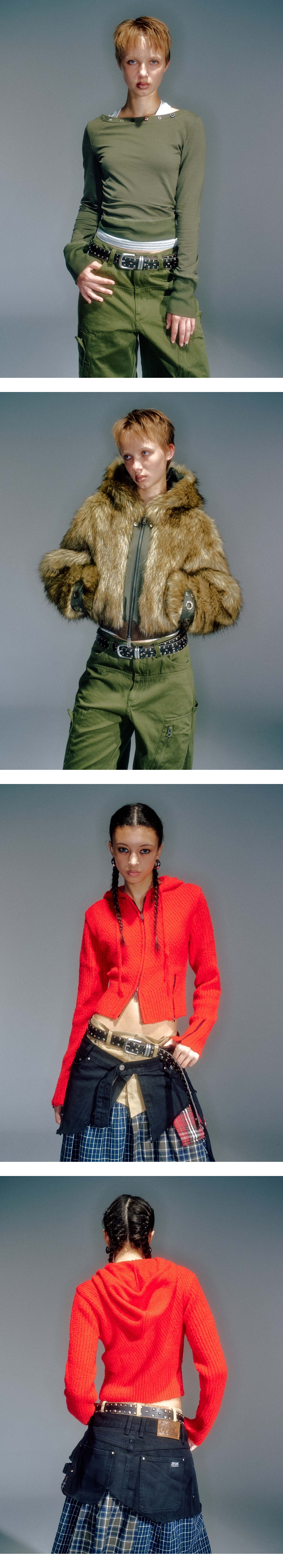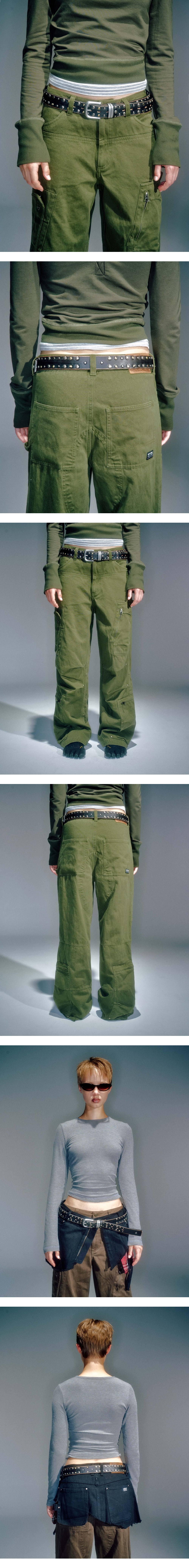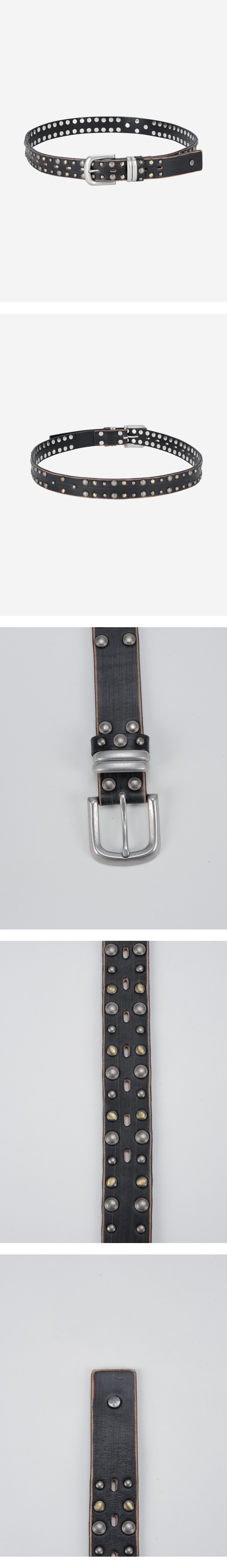빈티지하게 가공한 소가죽 사용 유니섹스로 사용할 수 있는 길이감 배색 더블 리벳 장식 사용 베이컨트 심볼 리벳 포인트 빈티지 무드의 도금 장식 사용 FREE (CM) Total Length: 115.5