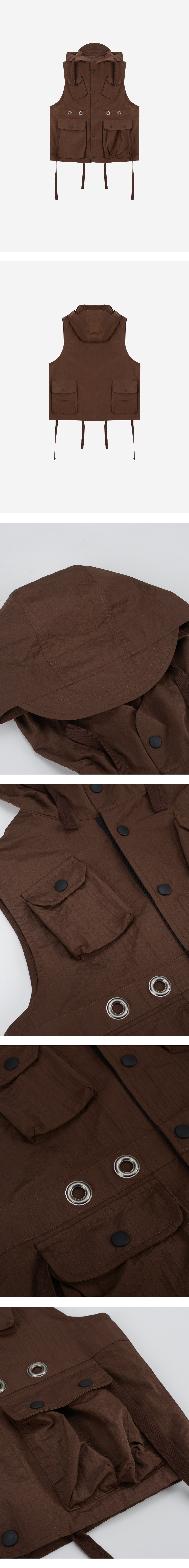 Vacant Archive Men Brook Cargo Hoodie Vest Brown