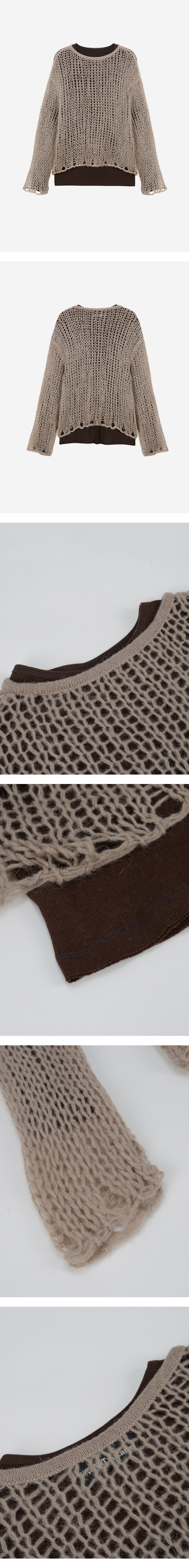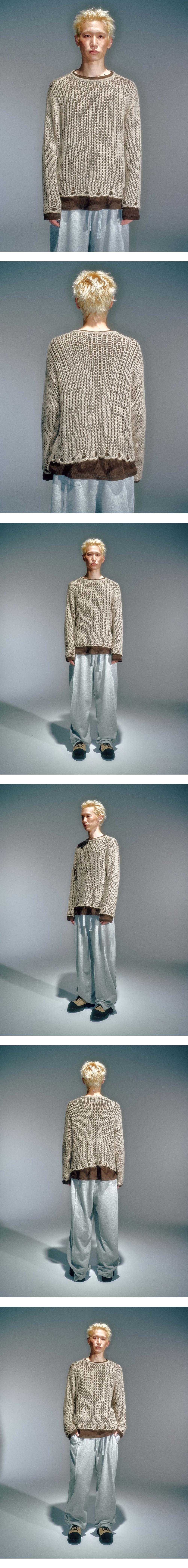 베이컨트 아카이브 맨 구피 네트 레이어드 니트 베이지