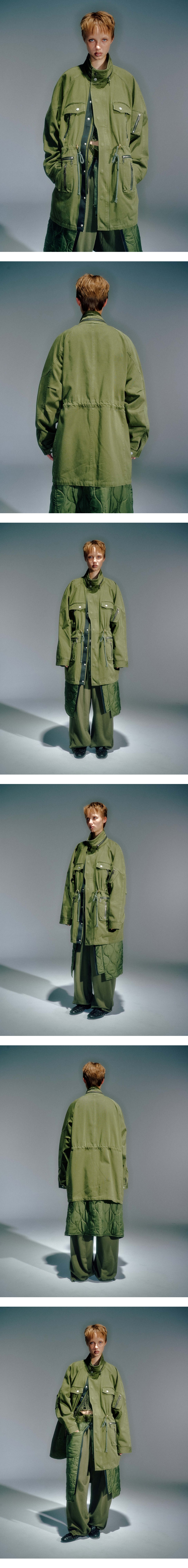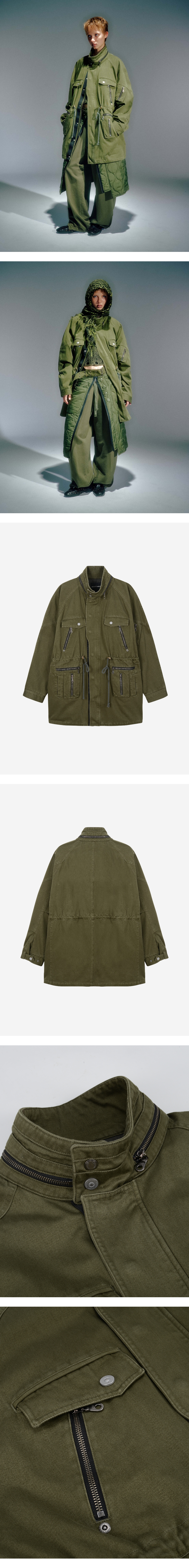 가먼츠 워싱 전면부 포켓 디테일로 수납공간 확보 전면부 허리 조임 디테일 전면부 밑단 쪽으로 줄어드는 아웃 플라켓 디자인 소매 절개 디테일 YKK 2WAY 지퍼 사용 S / M / L (CM) Length : 83 / 85 / 87 Bust : 67 / 69 / 71 Sleeve (화장) : 88 / 89 / 90 이 제품은 UNI 사이즈로, WOMEN & MEN 모두 동일 사이즈로 제공됩니다.