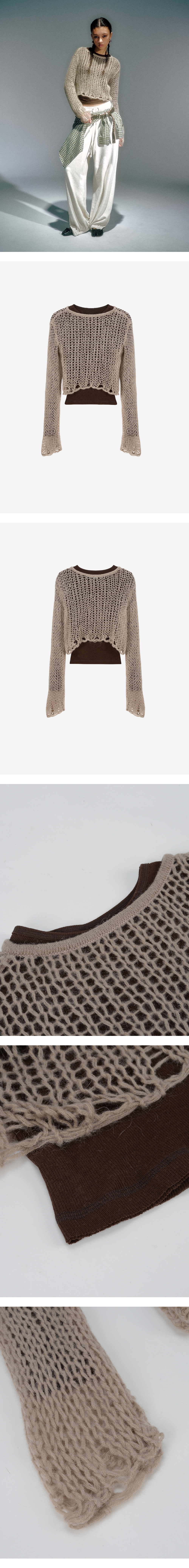 베이컨트 아카이브 우먼 구피 네트 레이어드 니트 베이지