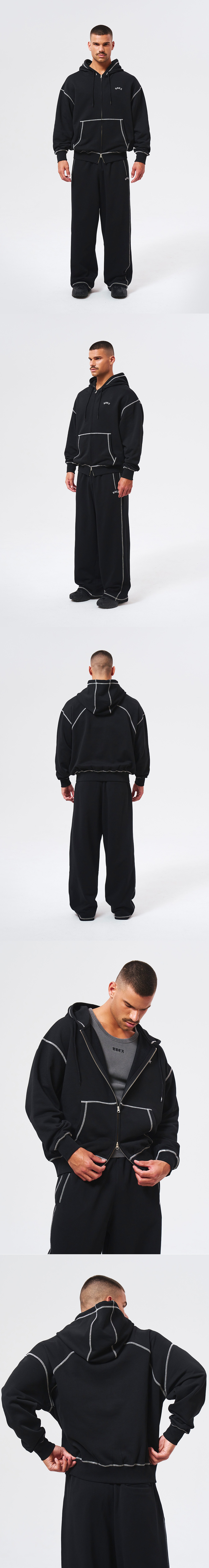 HDEX Contrast Stitch Hoodie Zip-up Black