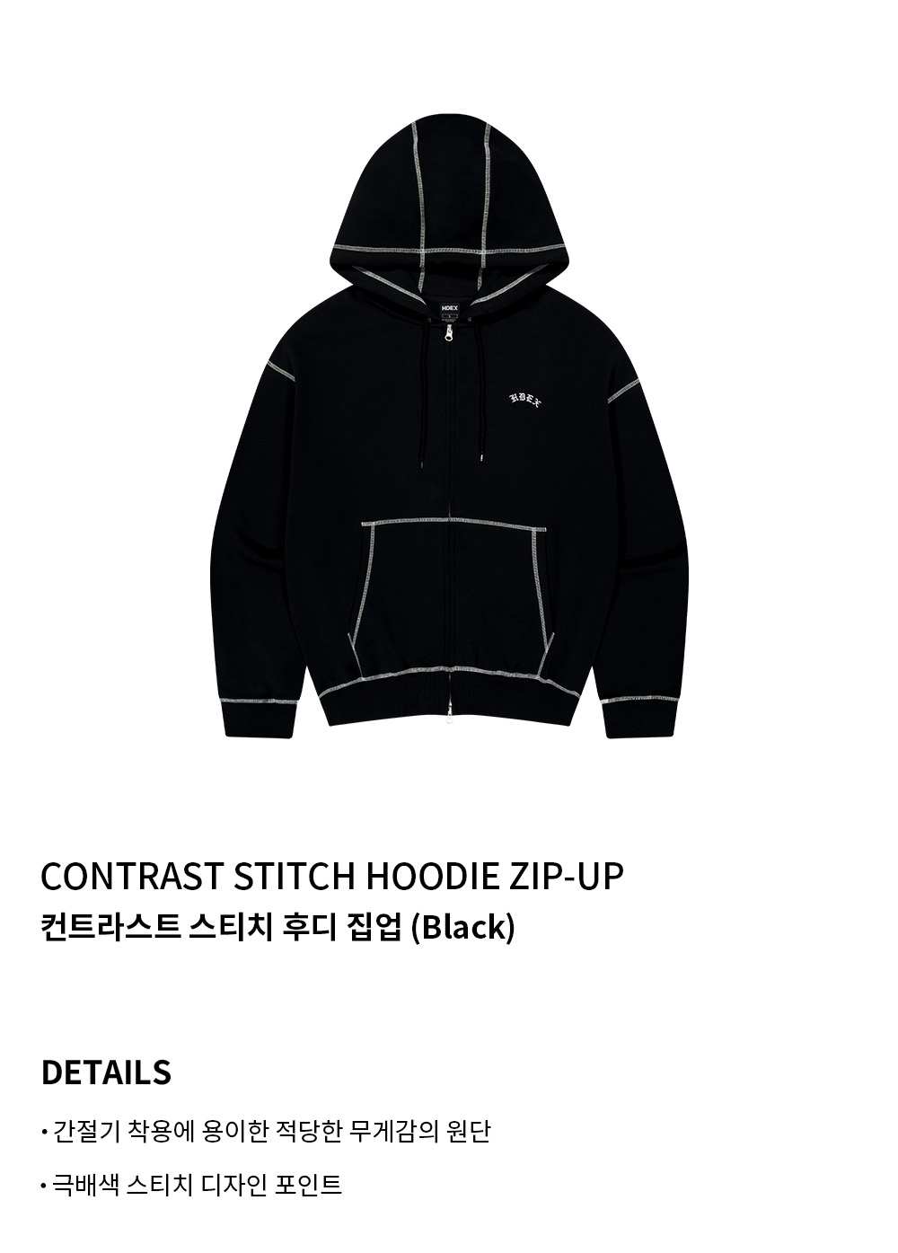 에이치덱스 컨트라스트 스티치 후디 집업 블랙