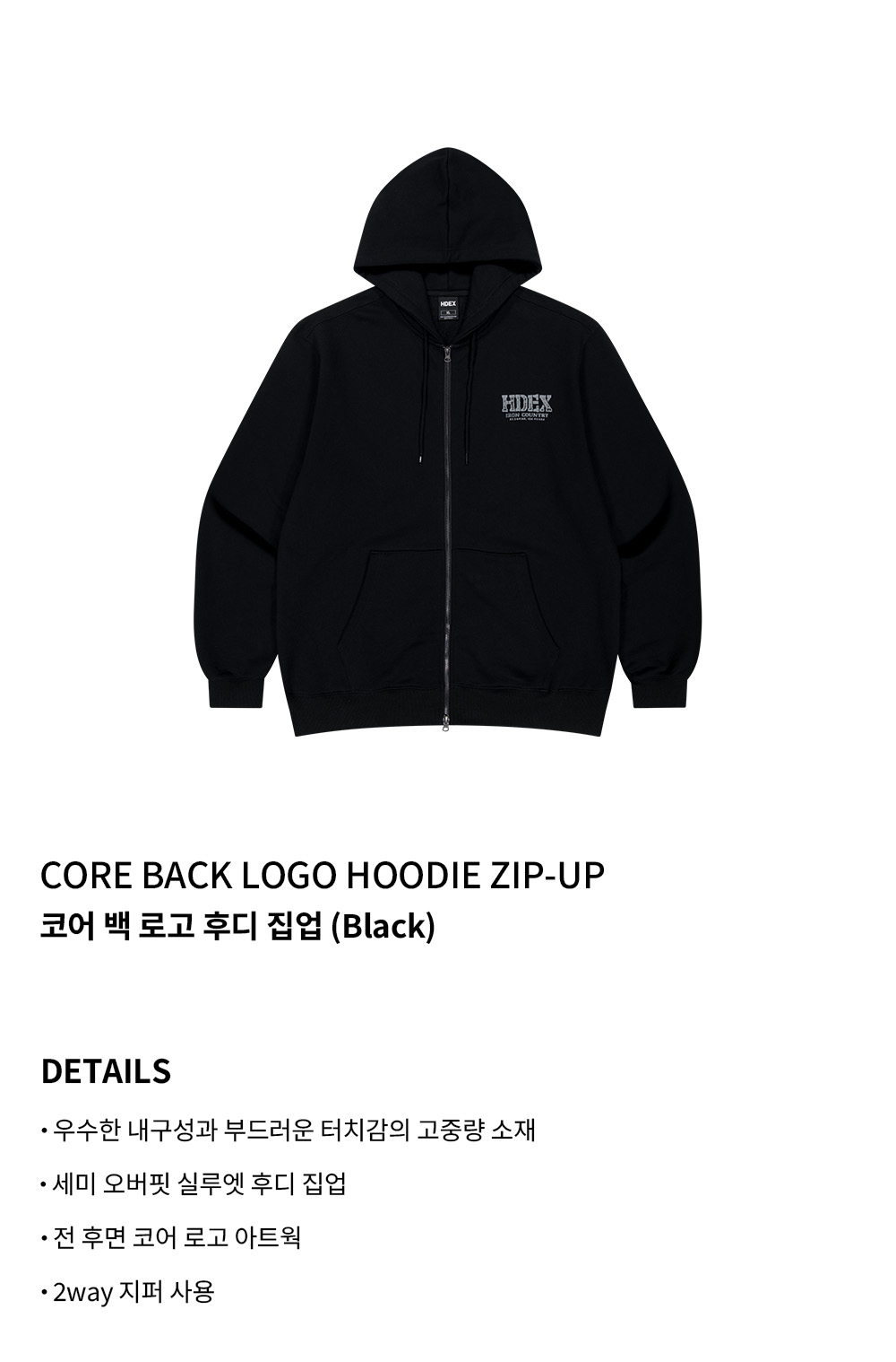 에이치덱스 코어 백 로고 후디 집업 블랙
