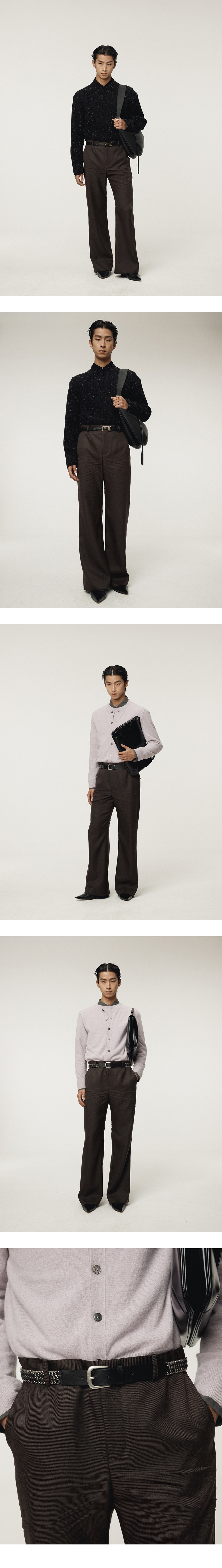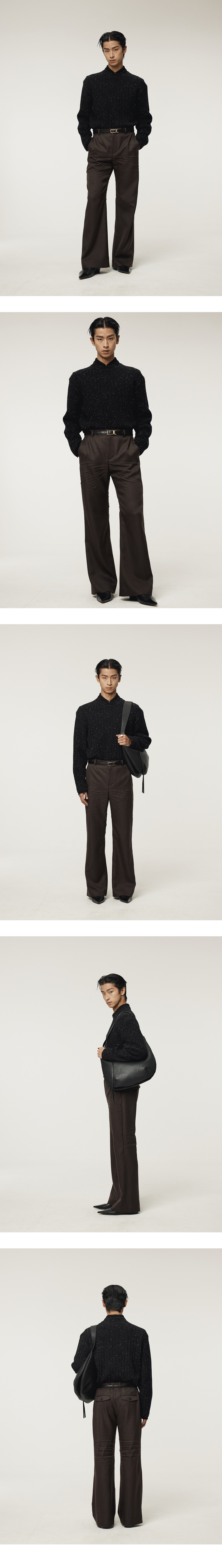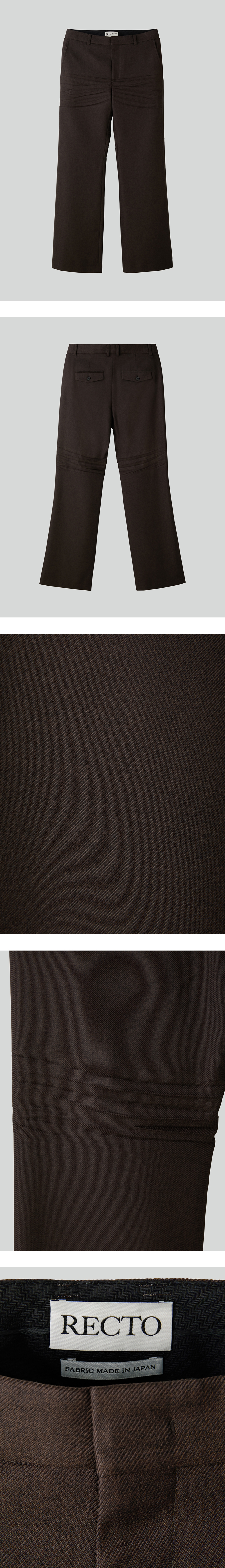- 원사에서 오는 은은한 멜란지 컬러감이 돋보이는 고급스러운 플레어 실루엣 - 여유 있는 라인으로 편안한 착용감 제공 - 앞뒤에 의도된 자연스러운 기계 주름 효과 - 뒷면 페이크 플랩 포켓 장식으로 디테일 포인트 - FABRIC MADE IN JAPAN
