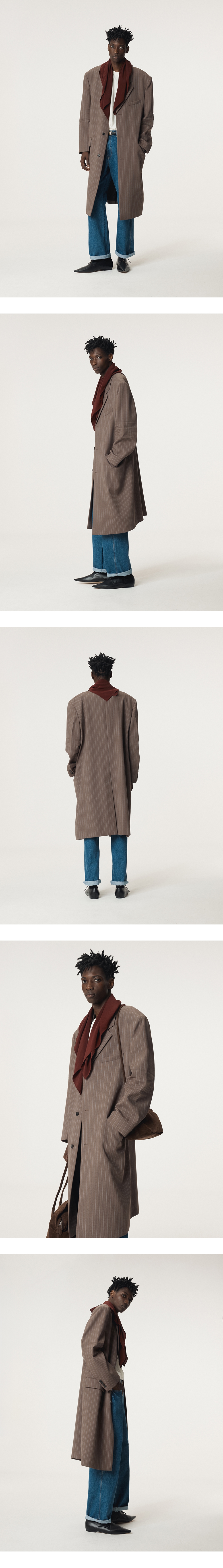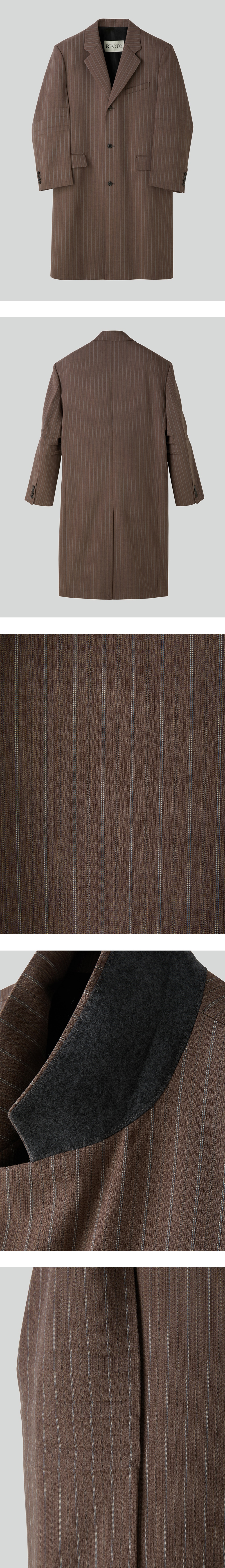 - 멀티컬러 스트라이프 패턴의 탄탄한 소재, 롱 기장감의 코트 실루엣 - 소뿔단추 여밈으로 클래식한 무드 강조 - 숄더 패드 부착으로 안정적인 어깨 라인 연출 - 내부 안감 처리로 착용감 강화 - 소매 주름 디테일로 입체감 있는 디자인 완성