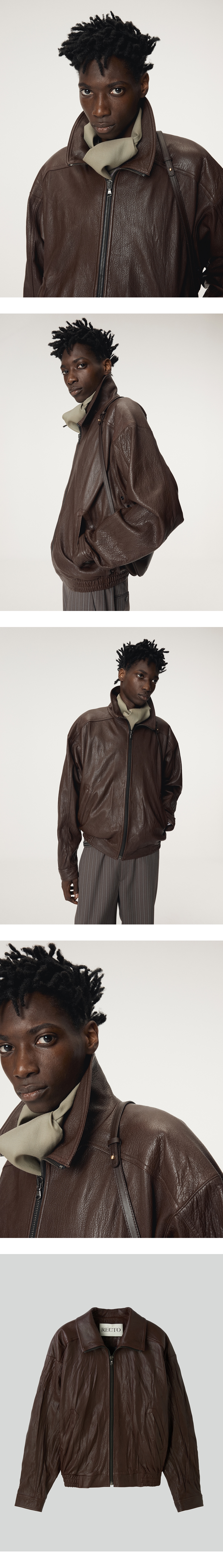 - 가볍고 부드러운 양가죽 소재, 여유 있는 실루엣의 하이넥 점퍼 - 이태리 람포 지퍼를 사용한 전면 지퍼 여밈 - 편안한 착용감과 높은 활동성 제공 - 내부 안감 처리로 완성도와 내구성 강화