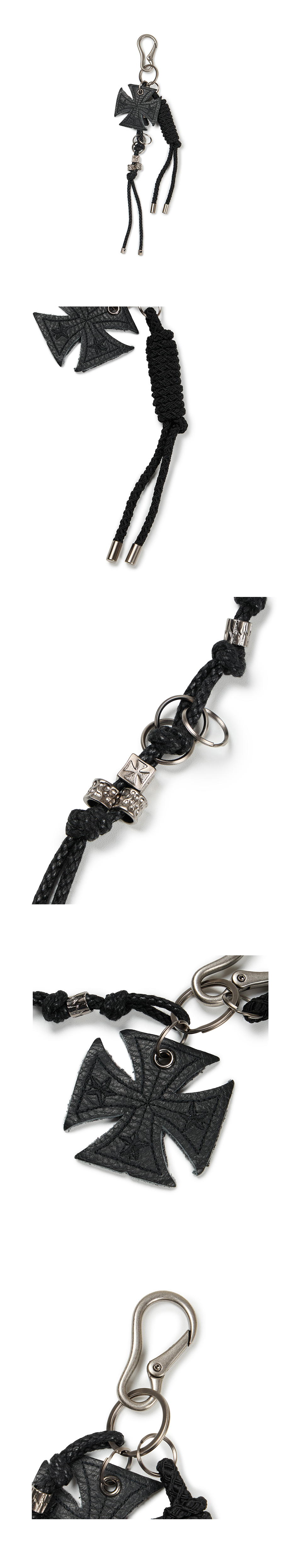 - 레더 및 코튼 페브릭 패치 - 엔틱실버 카라비너 - 비정형 포박끈 디테일 - 금속 비즈 포인트 MADE IN CHINA