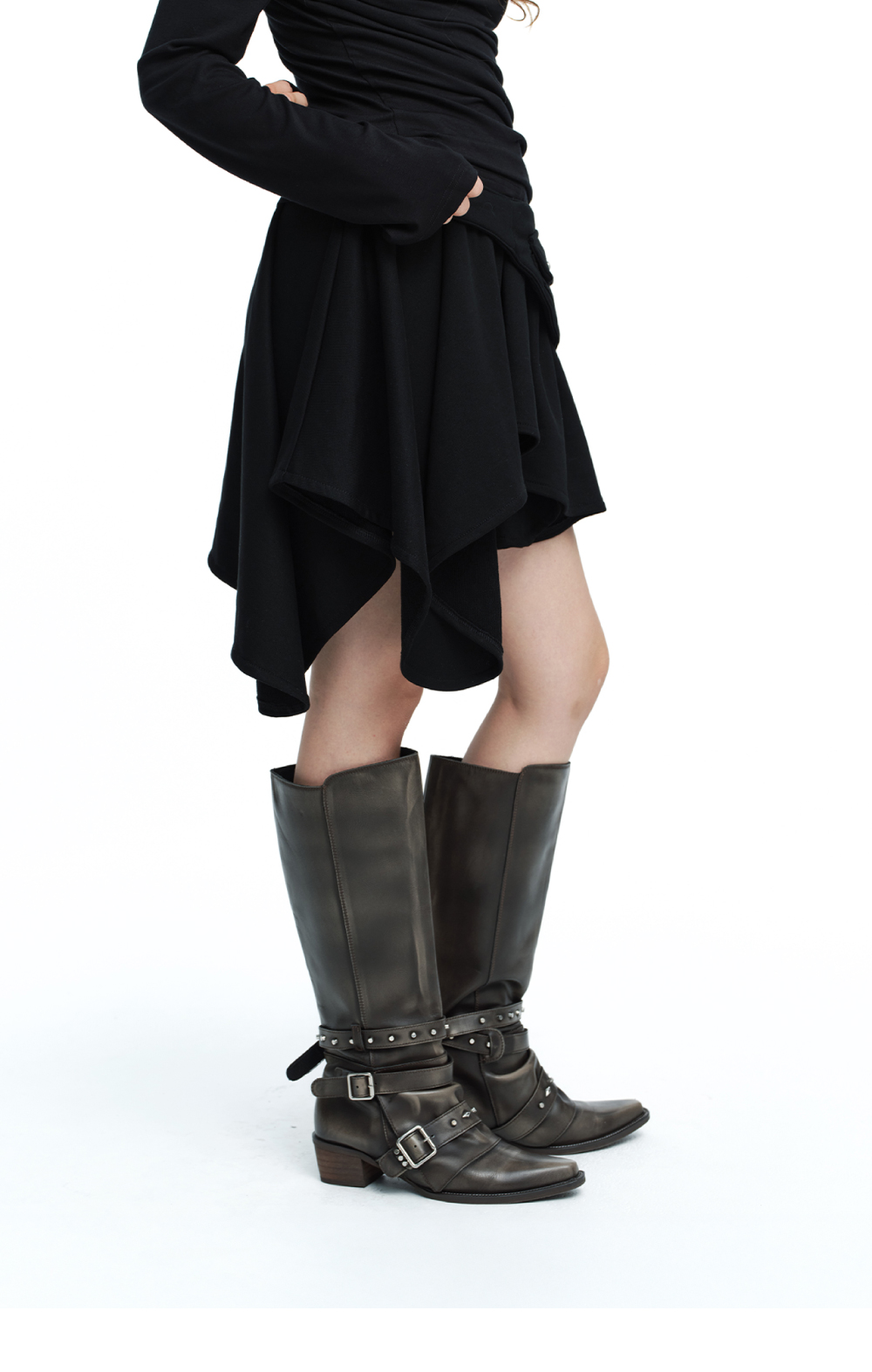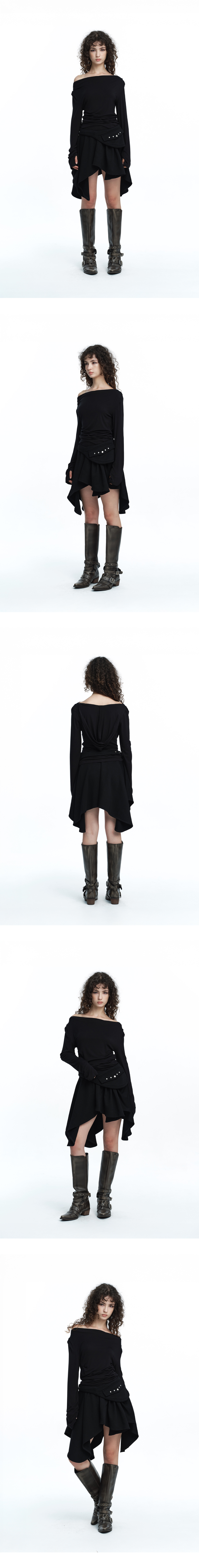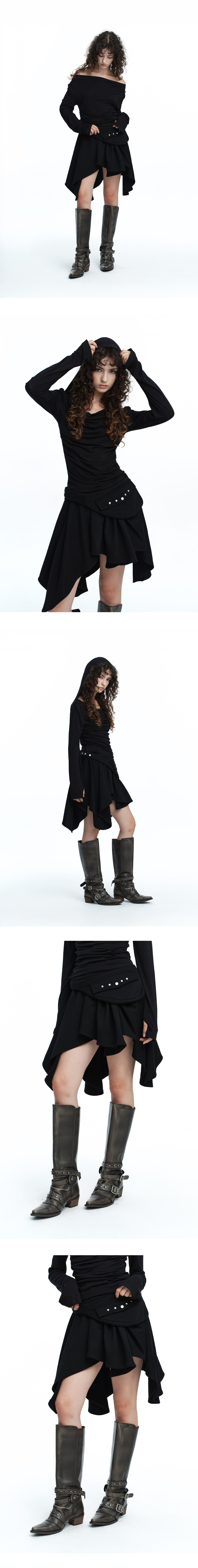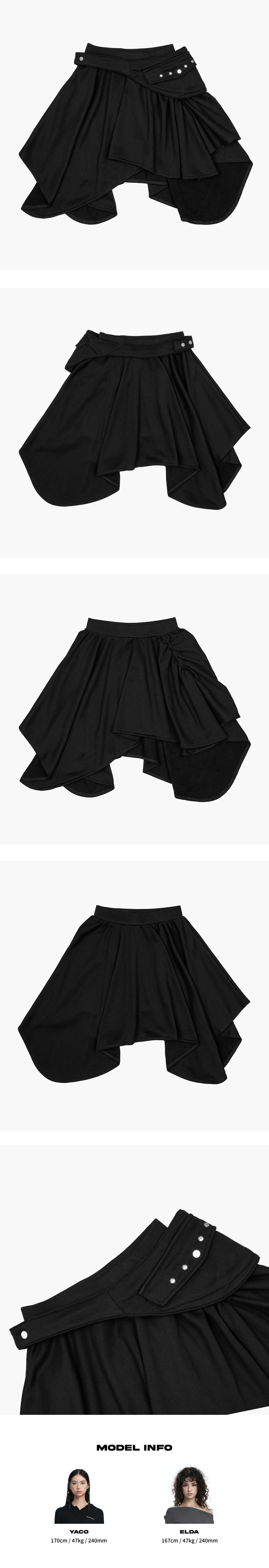 탈부착 가능한 벨트 포켓이 더해진 드레이핑 스커트입니다. 언밸런스한 실루엣과 풍성하게 흐르는 드레이프 라인이 시선을 사로잡으며, 벨트 포켓을 부착하거나 분리해 스타일에 맞는 다양한 무드를 연출할 수 있습니다. 도톰한 후드 원단과 허리 밴딩으로 안정적이면서도 편안한 착용감을 제공합니다. Model size : YACO 170cm 47kg / ELDA 167cm 47kg Fitting size : S Material : Cotton 86% / Polyester 14%
