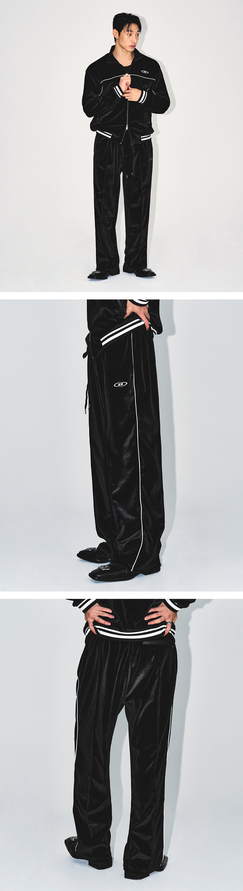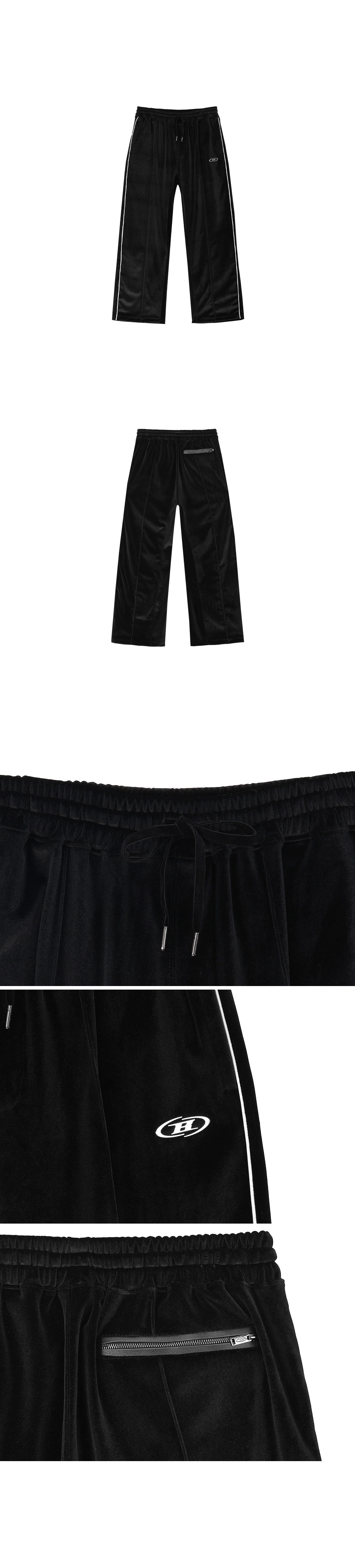 BORN TO WIN Track Line Velvet Semi Wide Pants Black