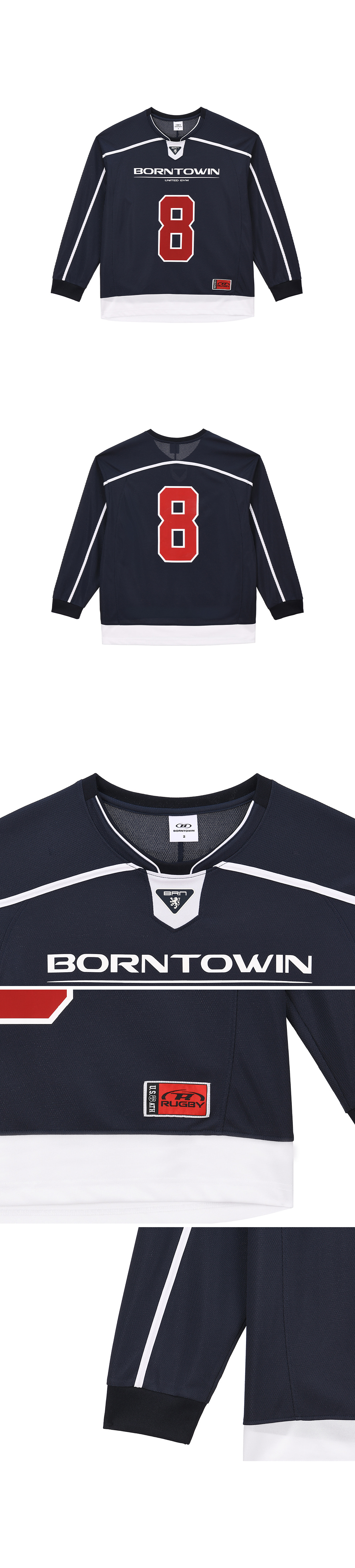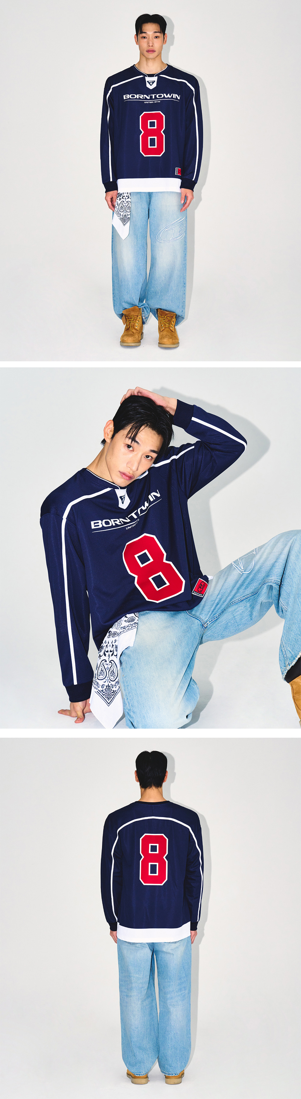 [DETAILS] * 라인 테이핑 럭비 롱슬리브 - 흡습속건 폴리 메쉬 원단 - 배색 파이핑 절개 라인 - 넘버링 그래픽 포인트 - 시즈널 라벨 포인트 Material : POLYESTER 100% Fitting : MK 2 Size, 181cm, 71kg