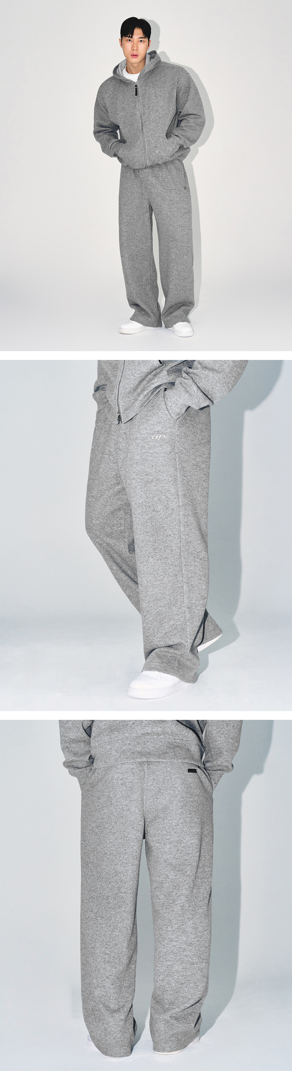 본투윈 니트 라이크 와이드 팬츠 멜란지그레이