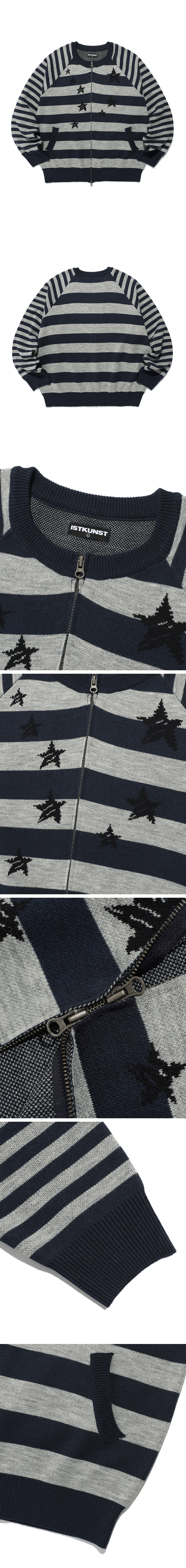 ISTKUNST Star Stripe Raglan Knit Zip Up Navy