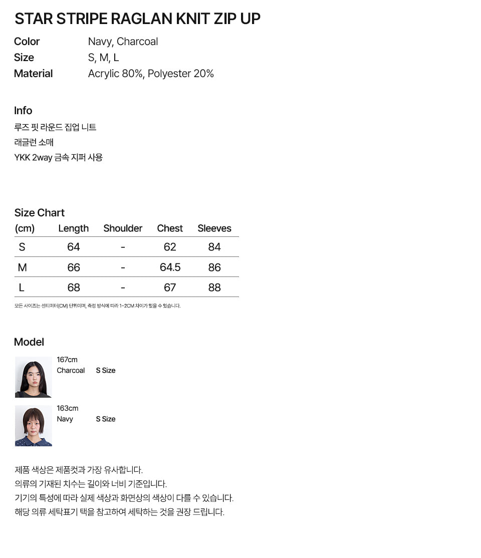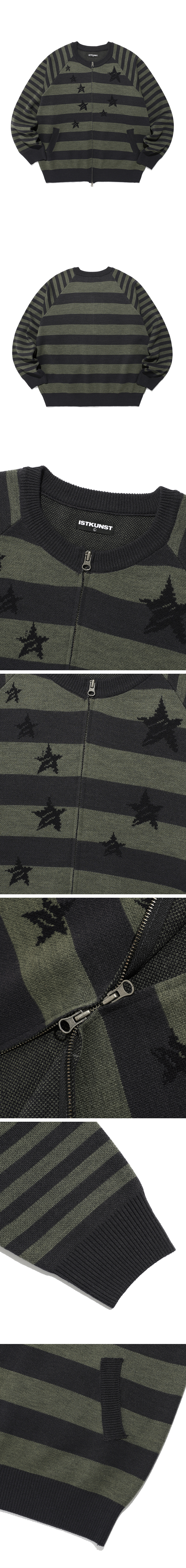 이스트쿤스트 스타 스트라이프 래글런 니트 집업 차콜