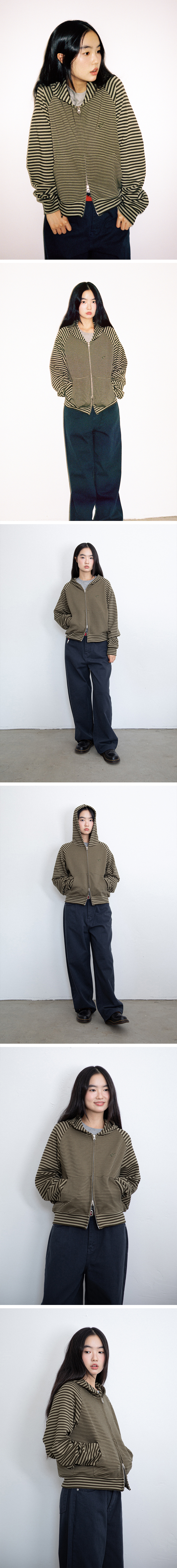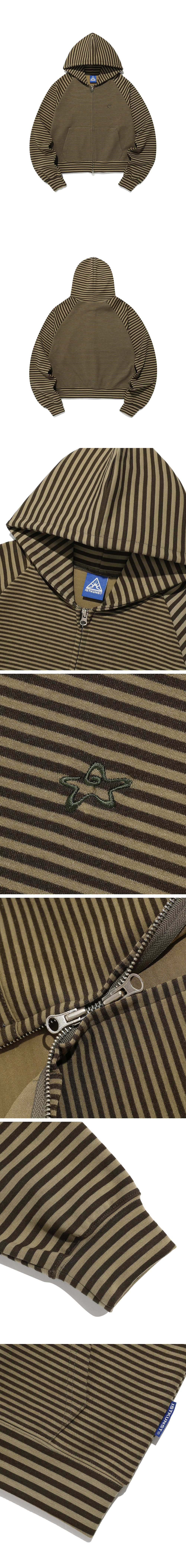 이스트쿤스트 스타로고 스트라이프 후드집업 카키