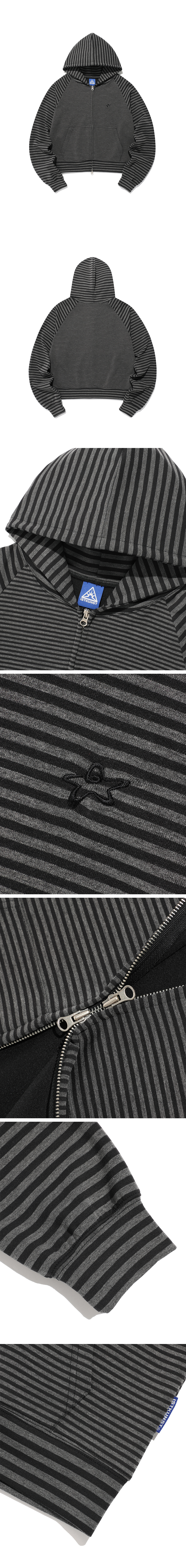 이스트쿤스트 스타로고 스트라이프 후드집업 블랙