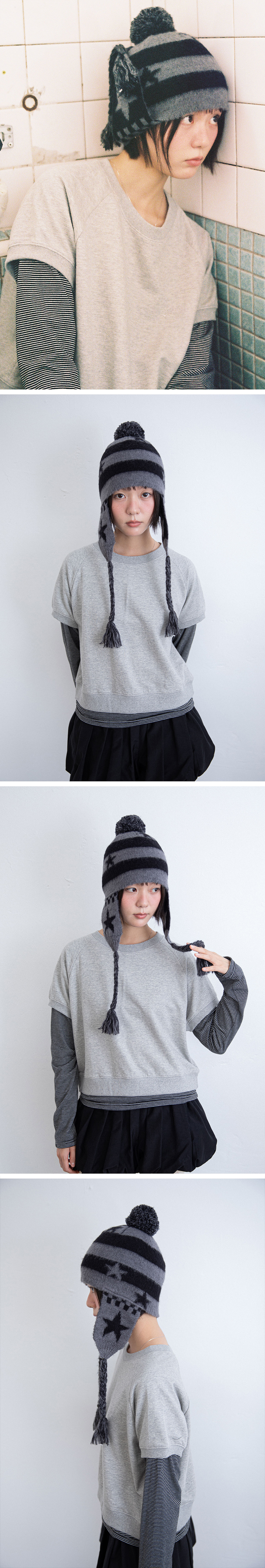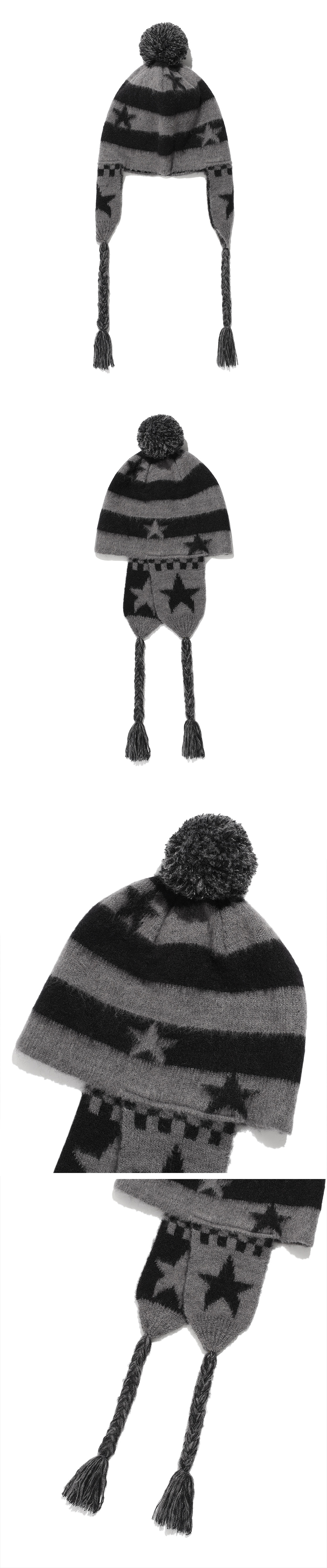 이스트쿤스트 스타 스트라이프 이어플랩 비니 블랙