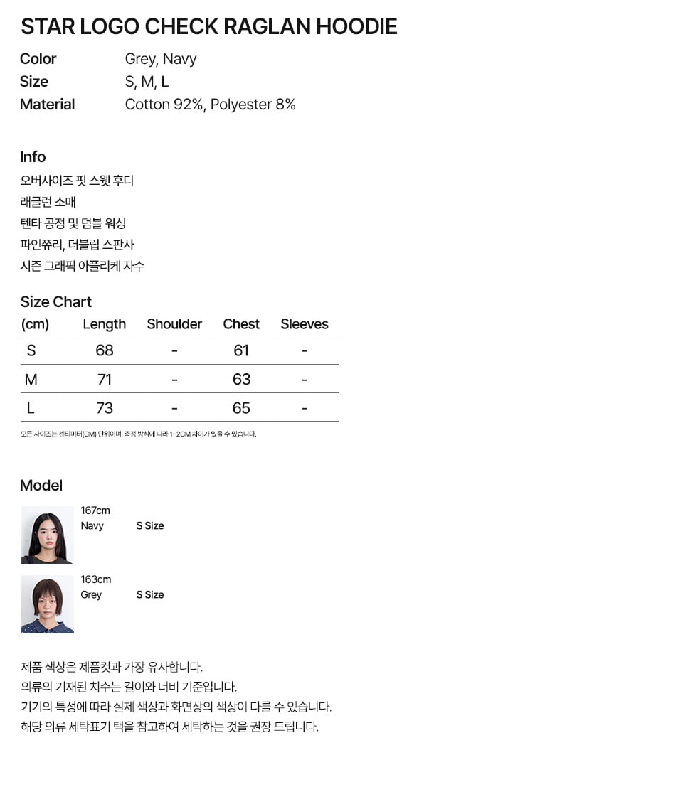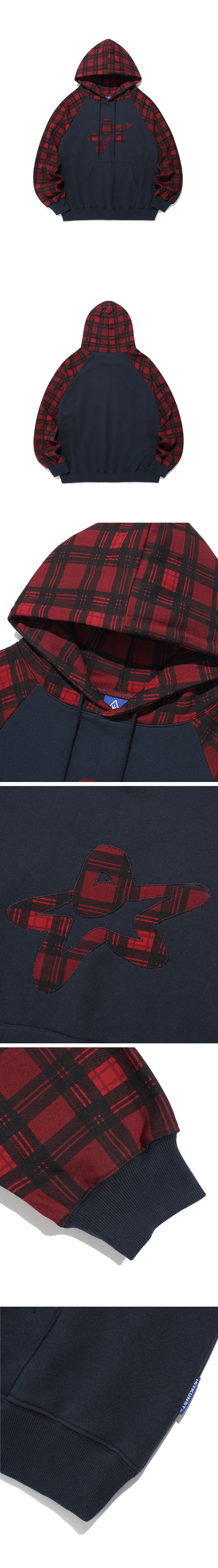 이스트쿤스트 스타 로고 체크 래글런 후디 네이비