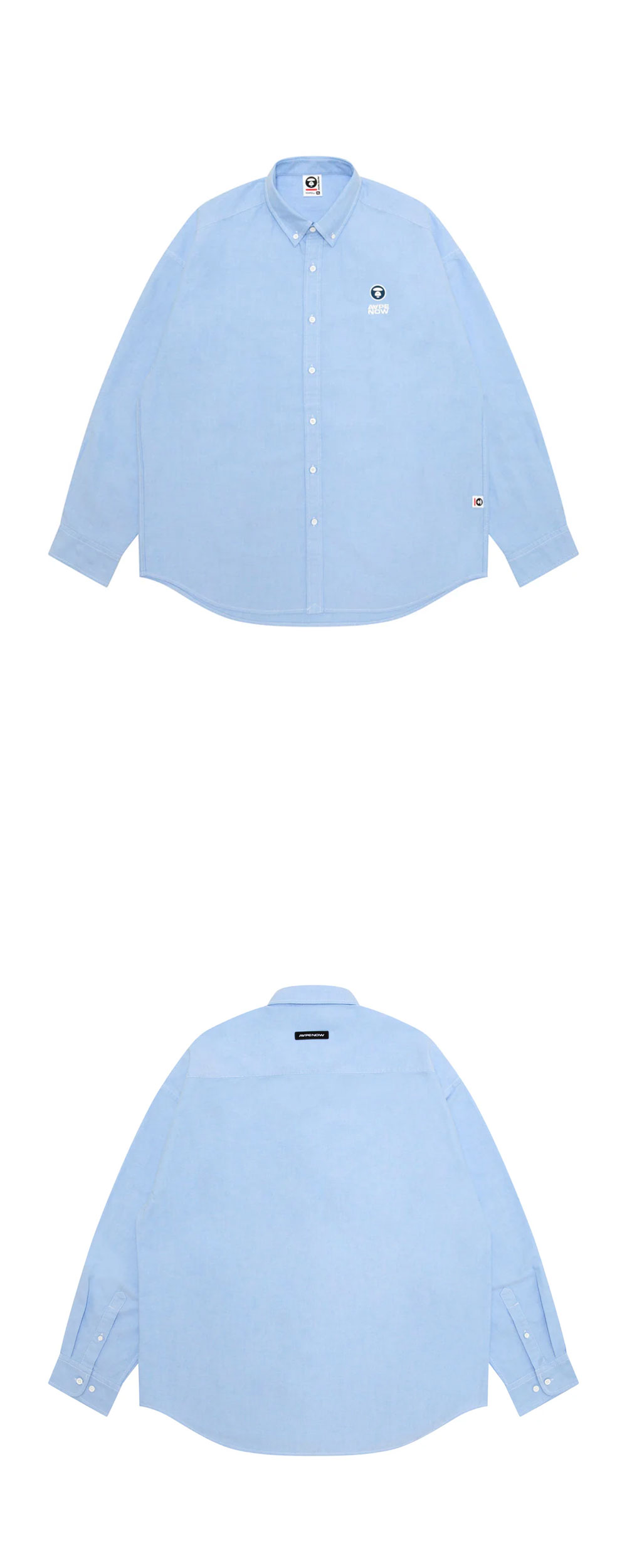 기본에 충실한 에이프 나우 롱슬리브 셔츠 블루입니다. - 문페이스 로고 패치 - 클래식 칼라 - 버튼 잠금