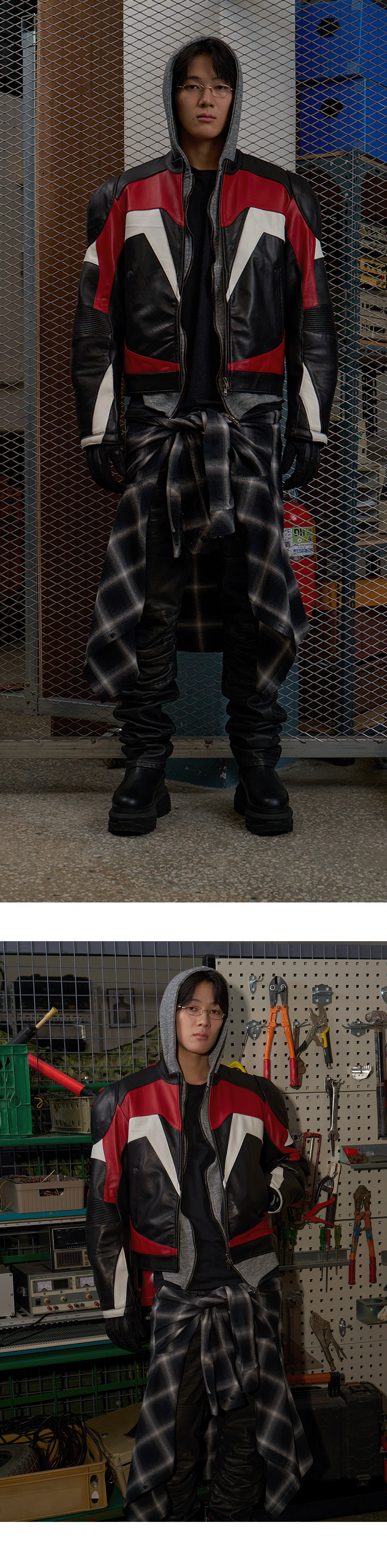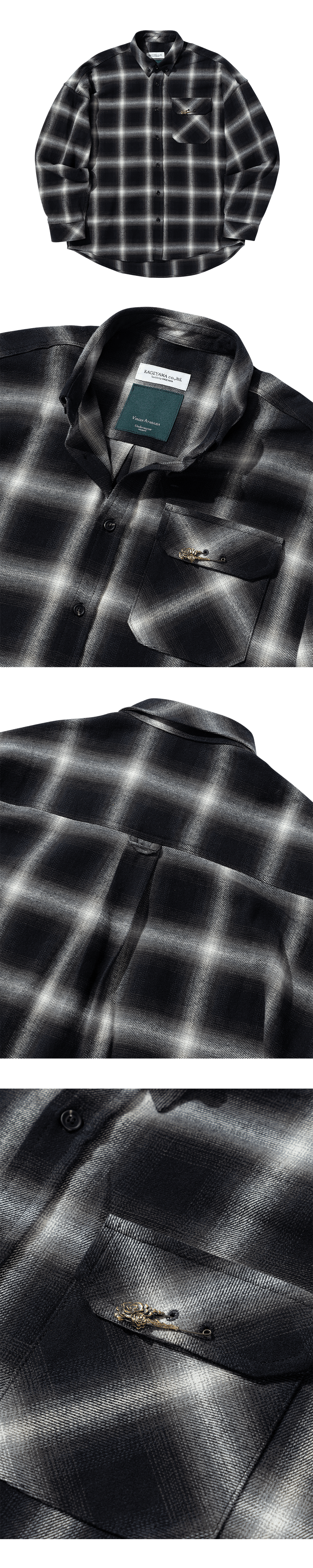 Undermycar 25FW Antique Rose Pin Ombre Border Check Shirts Black