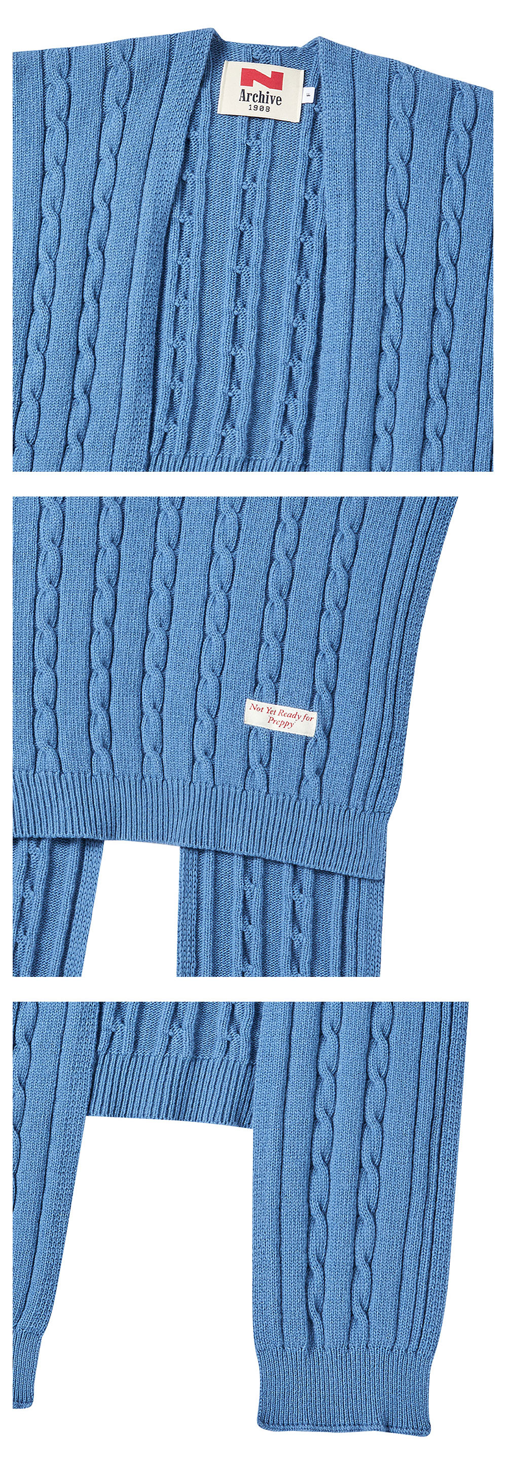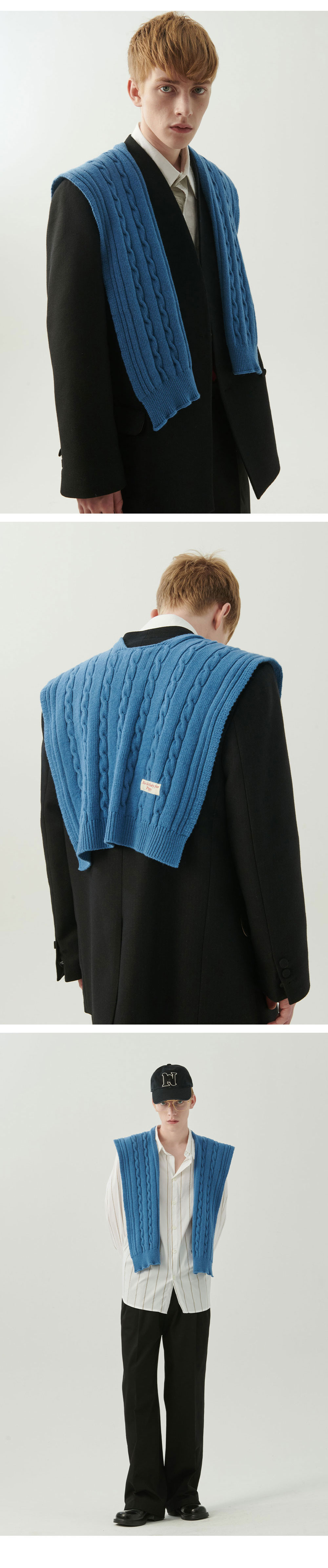 ㆍ한정 수량으로 제작된 컬렉션 라인의 니트 악세서리 ㆍ램스 울 혼방 원사로 짜여진 클래식한 케이블 조직의 니트 ㆍ어깨나 소매등 다양한 곳에 레이어링을 통해 연출이 가능한 니트 ㆍ스탠다드 핏으로 자연스러운 실루엣 연출 ㆍ등판 핸드 스티치 자수의 라벨 디테일 ㆍ유니섹스 상품으로 제작