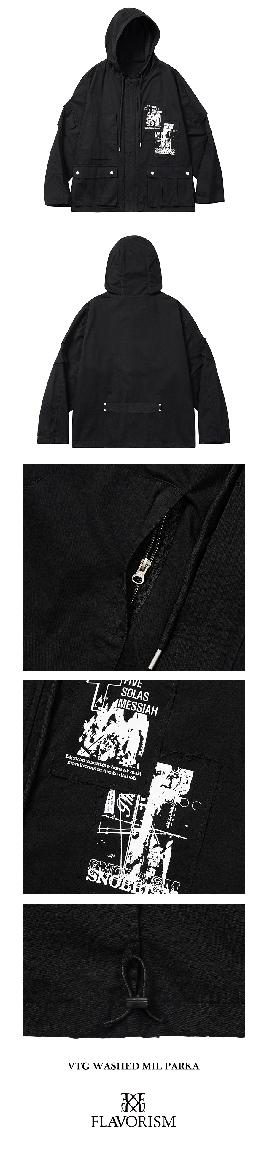 플레이버리즘 빈티지 워시드 밀 파카 워시드 블랙