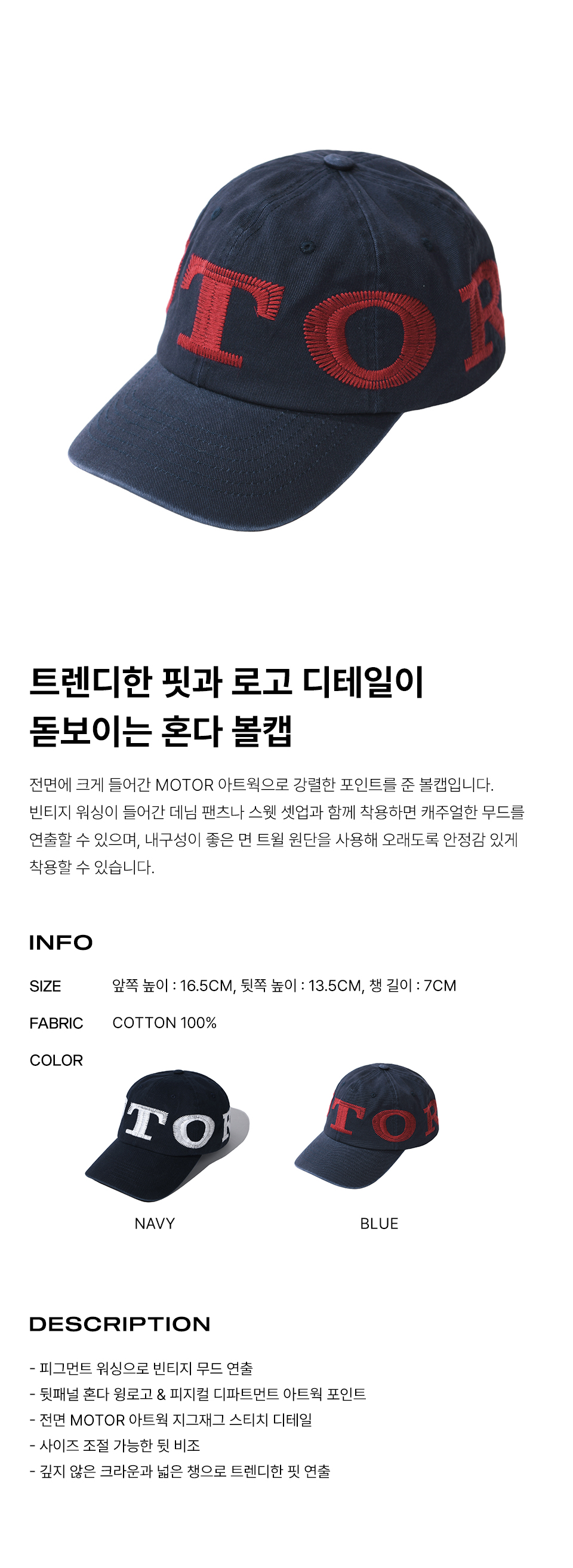 혼다 지그재그 스태프 볼 캡 블루